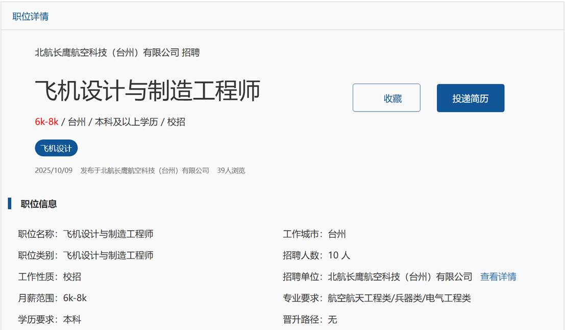 4,北航长鹰航空科技(台州)有限公司就业信息网
