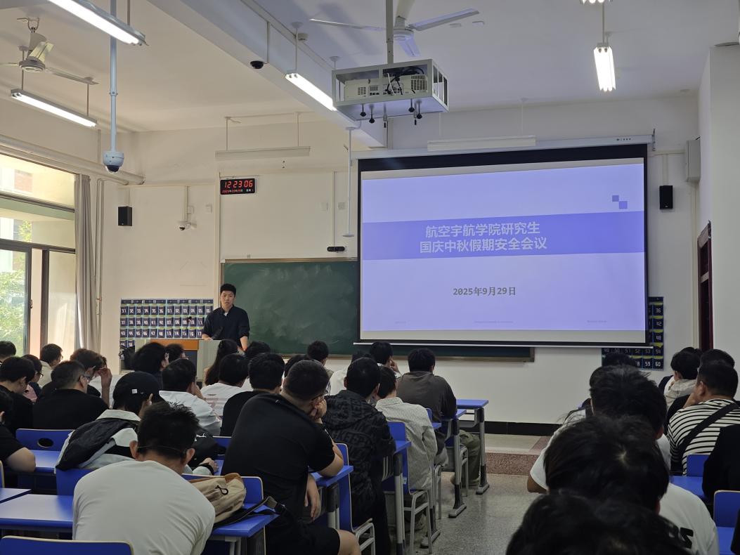 为切实做好国庆节、中秋节研究生安全教育管理工作,进一步增强安全防范意识,筑牢安全防线。9月29日中午,航空宇航学院在03C102召开研究生国庆中秋安全教育专题会议。会议由研究生辅导员周达主持,全体研究生参加。