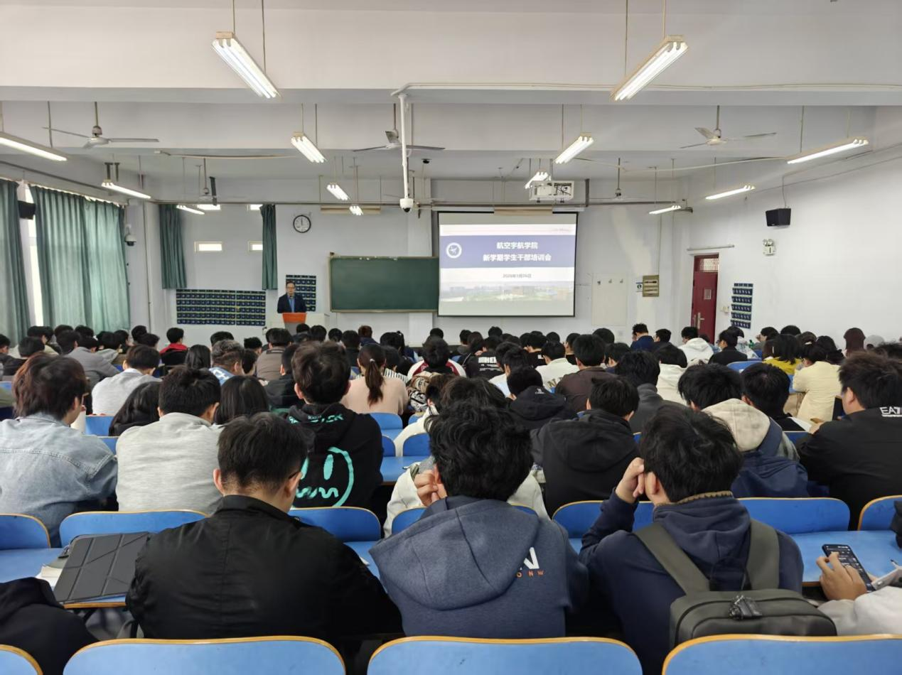 3月26日中午,我院在07B101教室召开新学期学生干部大会。航空宇航学院学工办主任李怡琼、分团委负责老师张鸣、辅导员王记平、冯睿聪及全体学生干部参会,会议由学院党委副书记赵兵主持。