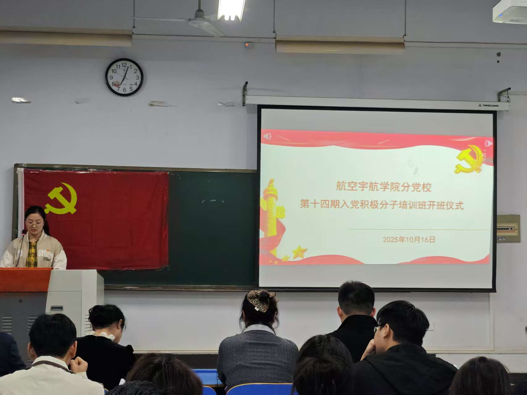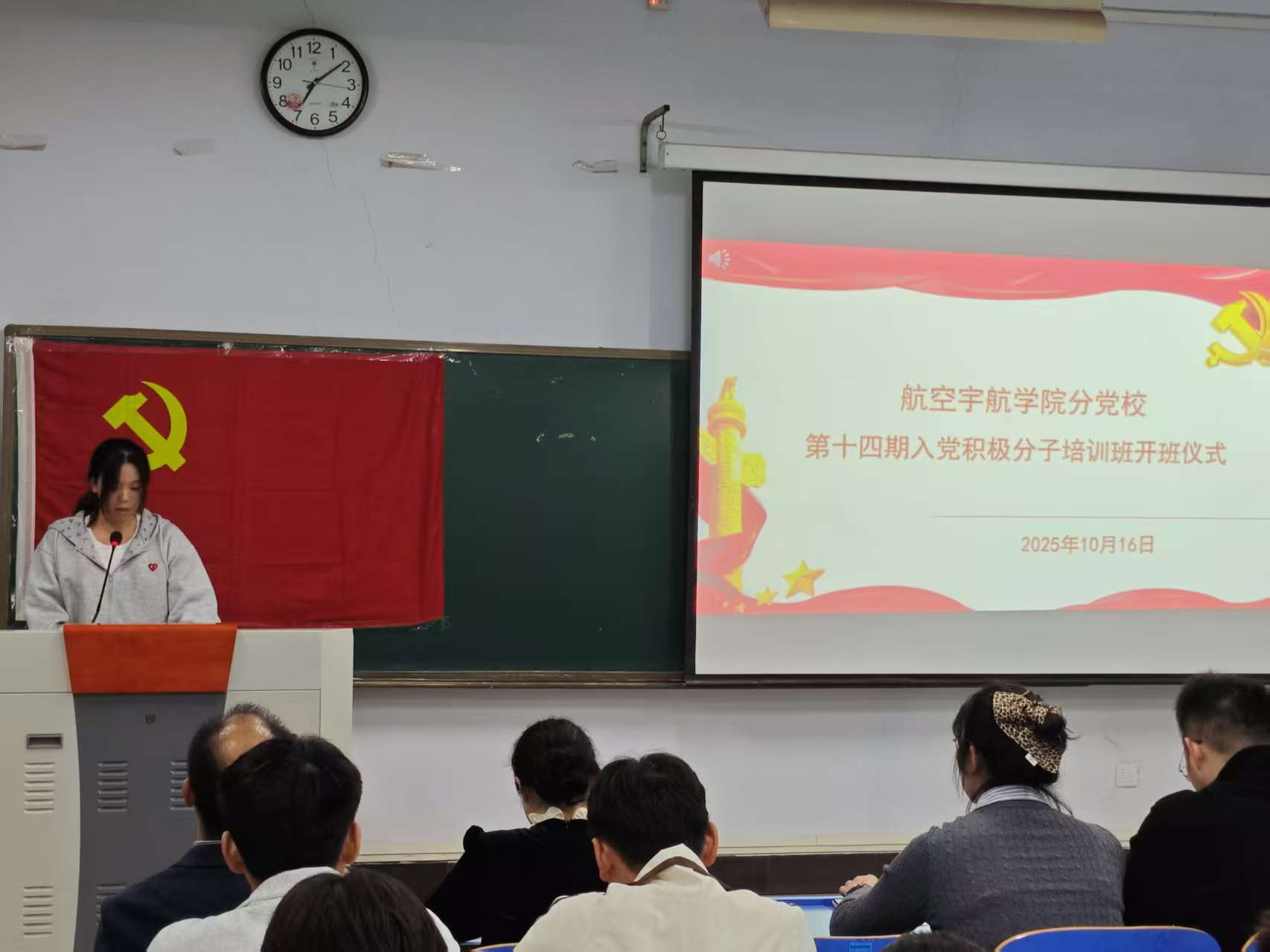 10月16日晚,我院于07B102教室举行分党校第十四期入党积极分子培训班开班仪式。航空宇航学院分党校校长、党委书记吴琳芳,党务专员、学工办主任李怡琼,学生第二党支部书记张鸣,学生第三党支部书记冯睿聪出席,仪式由党委副书记赵兵主持,40名入党积极分子参加培训。