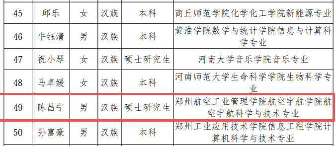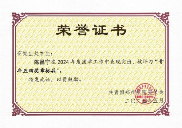 近日,我院2023级航空宇航科学与技术专业研究生陈昌宁成功获评第三批河南省高校“大学生党员标兵”称号。