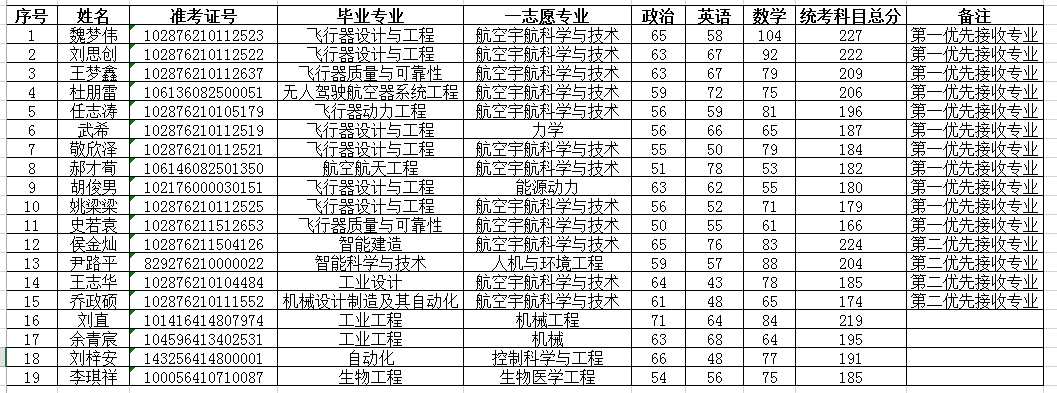 航空宇航学院2026年调剂复试名单
